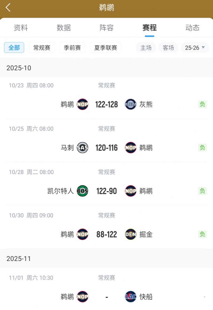 Đội vô địch duy nhất ở phương Tây! Pelicans đang hòa 0-4, ghi trung bình & điểm mỗi trận và đứng cuối giải đấu về tỷ lệ ghi bàn &. Họ đã đánh mất 66 điểm trong 2 trận vừa qua.