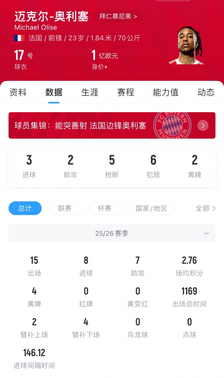 Olise 23 tuổi và chơi ở vị trí tiền vệ cánh phải. Anh đã ra sân 15 lần cho Bayern mùa này và đóng góp 8 bàn thắng cùng 7 đường kiến tạo. Hợp đồng của anh với Bayern sẽ hết hạn vào năm 2029 và anh hiện có giá trị 100 triệu euro. Bayern khẳng định không có ý định bán Olise và hy vọng sẽ giữ chân anh trong tương lai. Được biết, Olise không có điều khoản chấm dứt hợp đồng với Bayern.