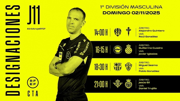 Vòng 11 La Liga sẽ bắt đầu vào cuối tuần này. Liên đoàn bóng đá Tây Ban Nha đã chính thức công bố việc bố trí trọng tài cho một số trận đấu ở vòng này. Trong số đó, Sesma sẽ bắt chính trận đấu giữa Barcelona và Elche trên sân nhà.