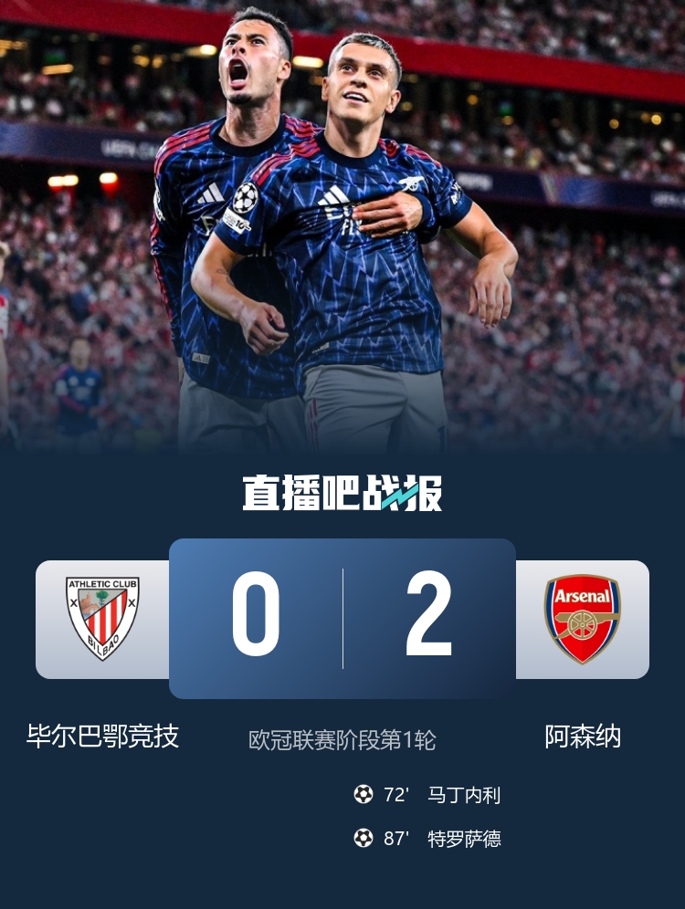thay thế Tashi Shen! Arsenal 2-0 Bilbao. Martinelli và Trosad đã vượt qua và bắn nhau